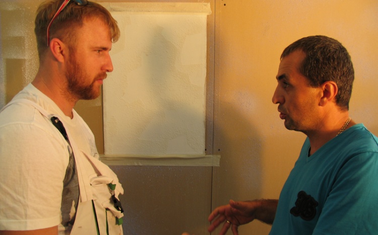 С целью передачи своего опыта и знаний к нам приехали наши партнеры из г. Славянск-на-Кубани, представители салона декоративных покрытий «Дока-Б», Николай Бондарь и Никита Баргер-Нестеренко! Ребята привезли с собой и с удовольствием поделились огромным багажом знаний о декоративных штукатурках и способах ее эффективного применения! Интересная подача теоретического материала в совокупности с нанесением покрытий на поверхность показывает, как легко можно создавать исключительные узоры на стенах, а применяя секретные приемы, делать это качественно и неповторимо!