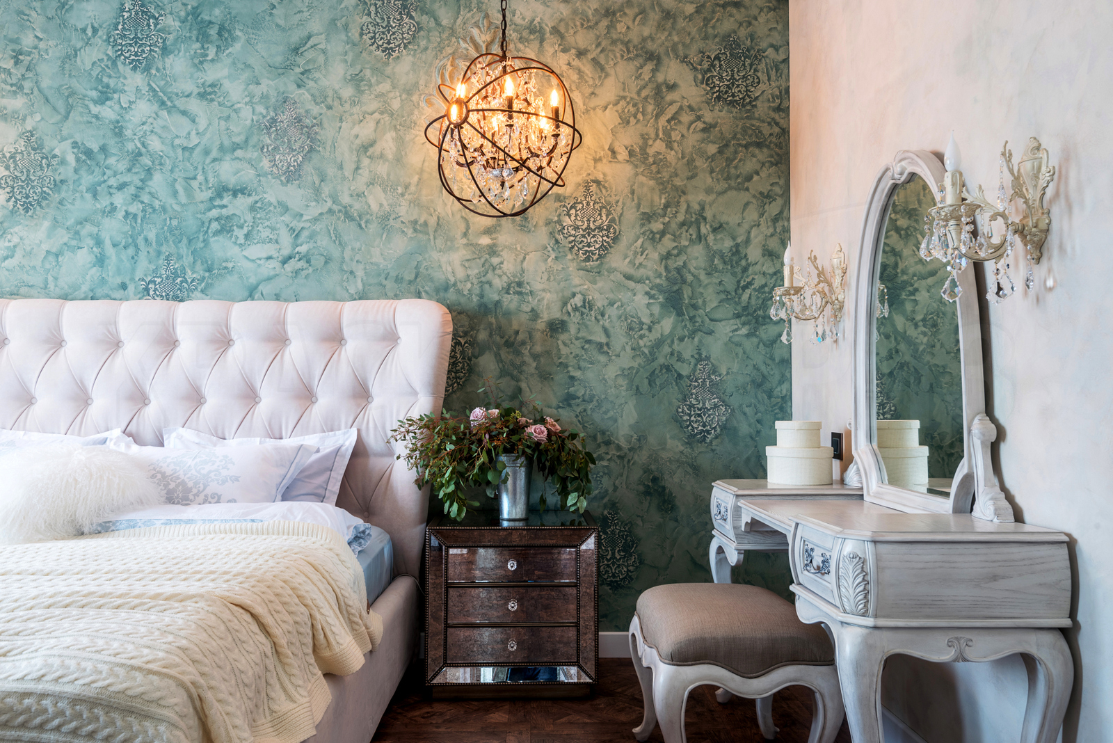 — декоративная штукатурка «Мелкий песок»+трафарет