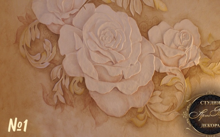 Работа №9. Автор: Вадим Рышков, салон декоративных покрытий «Фактура», г. Коломна, Московская область. Выполнена декоративной штукатуркой «Белая глина» с применением золотой эмали.