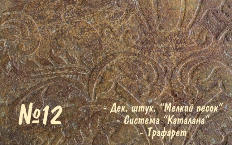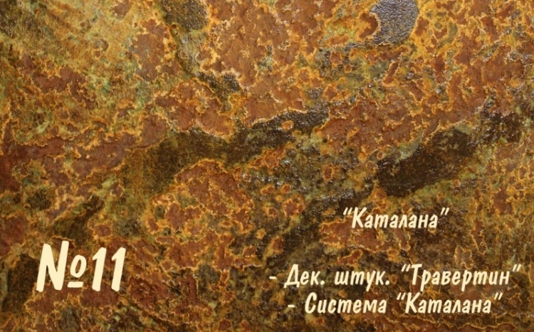 Работа №11. Автор: Олег Ситковский, салон «Краски Бриз», г. Ростов-на-Дону. «Каталана» — выполнена декоративной штукатуркой «Травертин» с применением системы коррозии «Каталана».