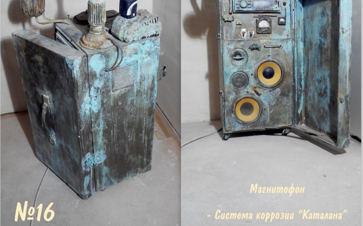Работа №16. Автор: Никита Баргер, г. Ростов-на-Дону. Ретро-магнитофон – декор выполнен системой коррозии «Каталана».
