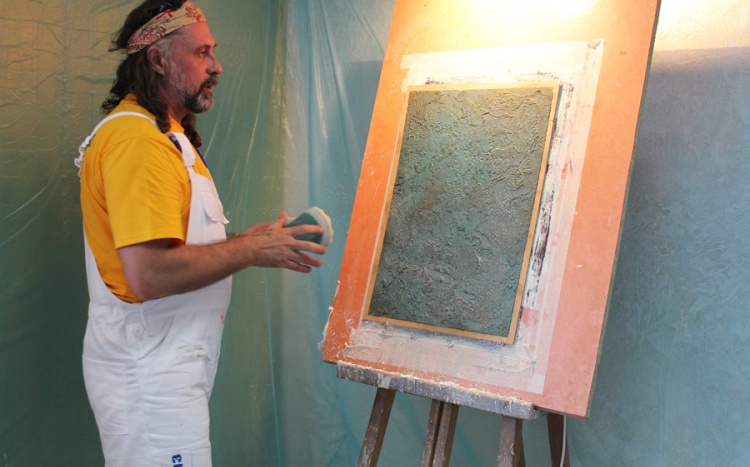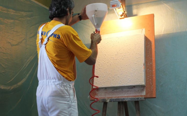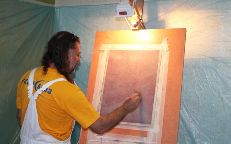 Мы показали декоративную краску «Замша» с трехслойным полноцветным нанесением, которая очень сильно увлекла участников своей оригинальностью понимания расщепления цвета; также в мастер-классе использовали агрегат «Хоппер», позволяющий наглядно увидеть его возможности нанесения материала быстро и, тем самым, многократно уменьшить сроки выполнения работ.