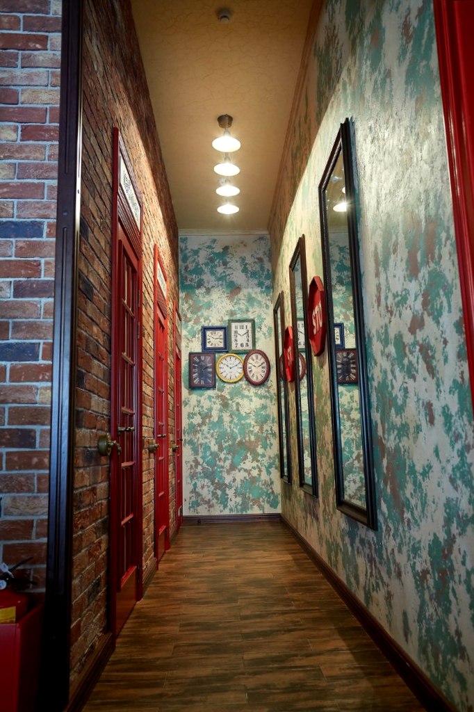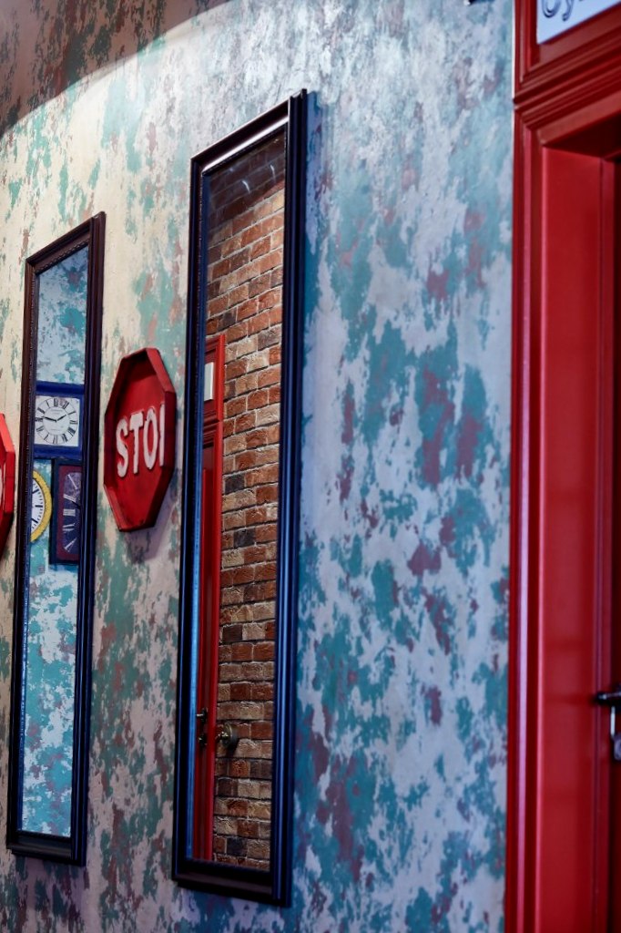 Выдержать лондонский стиль и подчеркнуть его индивидуальность получилось благодаря имитации старых стен «Винтажной краской» и создании декоративной ржавчины системой коррозии «Каталана».