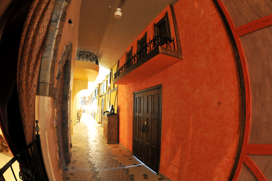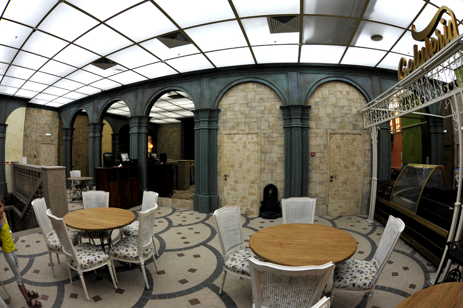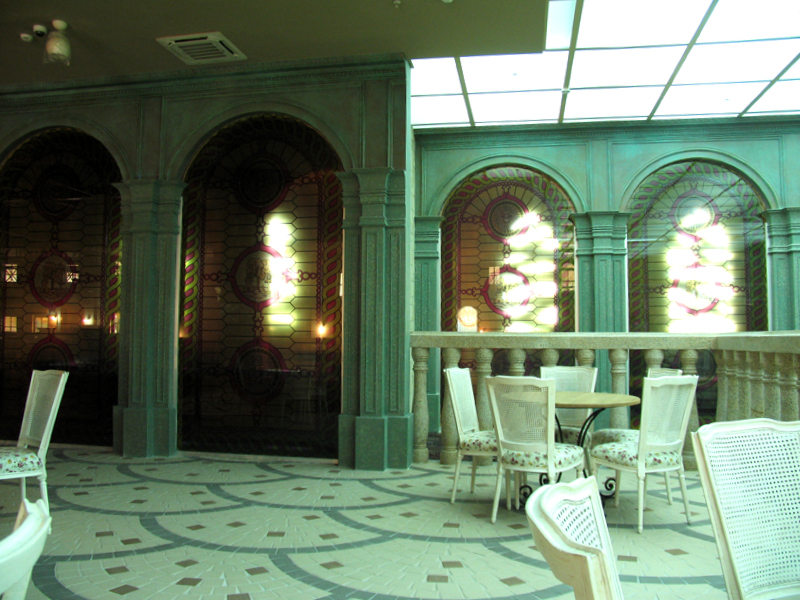Ресторан состоит из 13 тематических зон: рыцарского зала, караоке-зала, площадки в виде старинного корабля, а также отдельных банкетных залов.