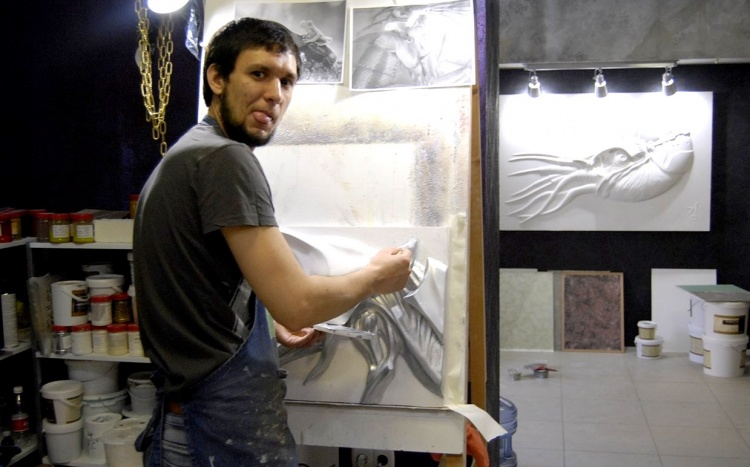 Мы любим сотрудничать с талантливыми людьми! Одним из новых проектов стала работа с Леонидом Ким, творческим и незаурядным человеком, с богатой фантазией и широким полетом мысли. Барельеф, выполненный руками этого художника, был предоставлен для дальнейшей работы над ним декоративными материалами «Краски Бриз», а именно — нашей революционной разработкой в области ускоренного процесса коррозии металлов — системой «Каталана»!