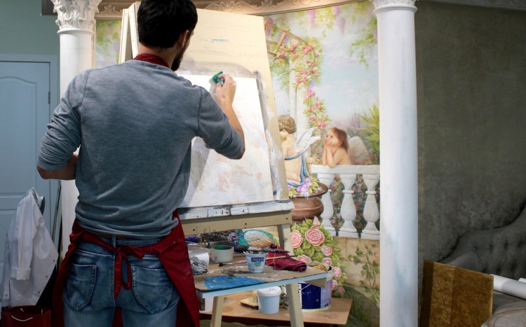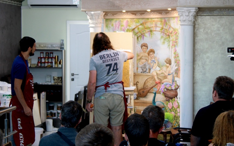 — Продемонстрировали работу с трафаретной техникой, имитацию потали, работу сухой кистью, жидким золотом и хитом продаж- «Винтажной» краской.