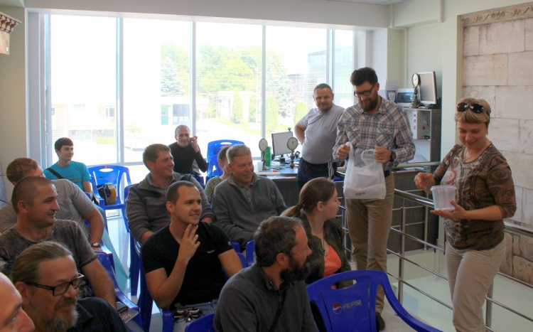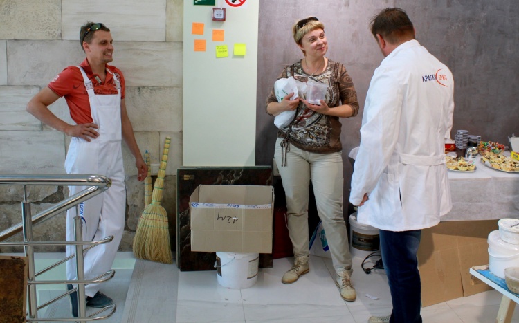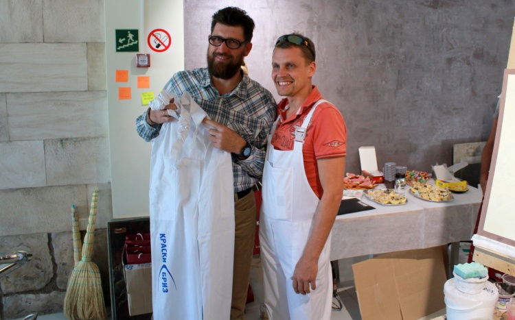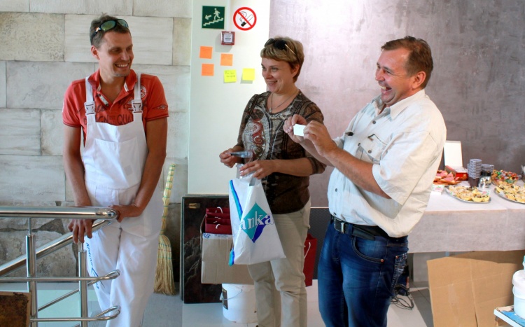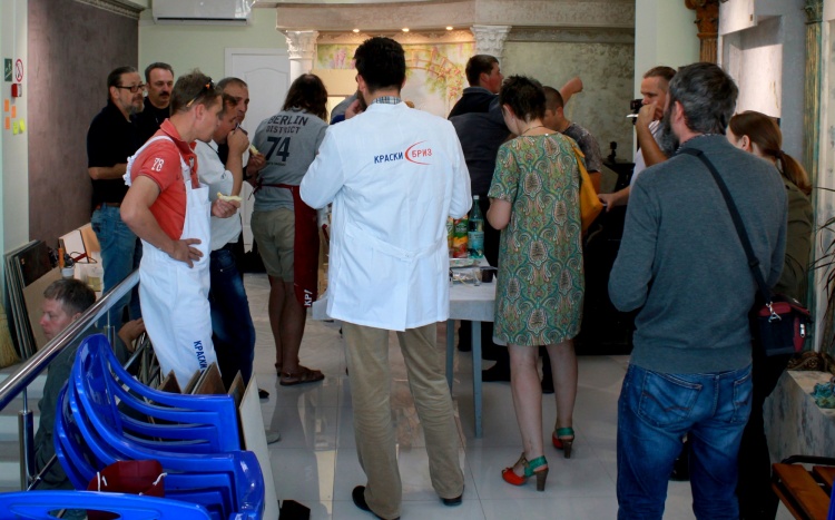 По традиции мы приехали не с пустыми руками и решили разнообразить наше мероприятие еще и веселым конкурсом на удачу, в котором все охотно согласились принять участие! Просто вытянув номерок, многие выиграли сувенирную продукцию ТМ «Краски Бриз»: ручки, брелки, а также фирменные комбинезоны и халаты! Руководители салона «АртОли» также поблагодарили мастеров-декораторов, которые уже длительно время работают с салоном,  и подарили подарки!